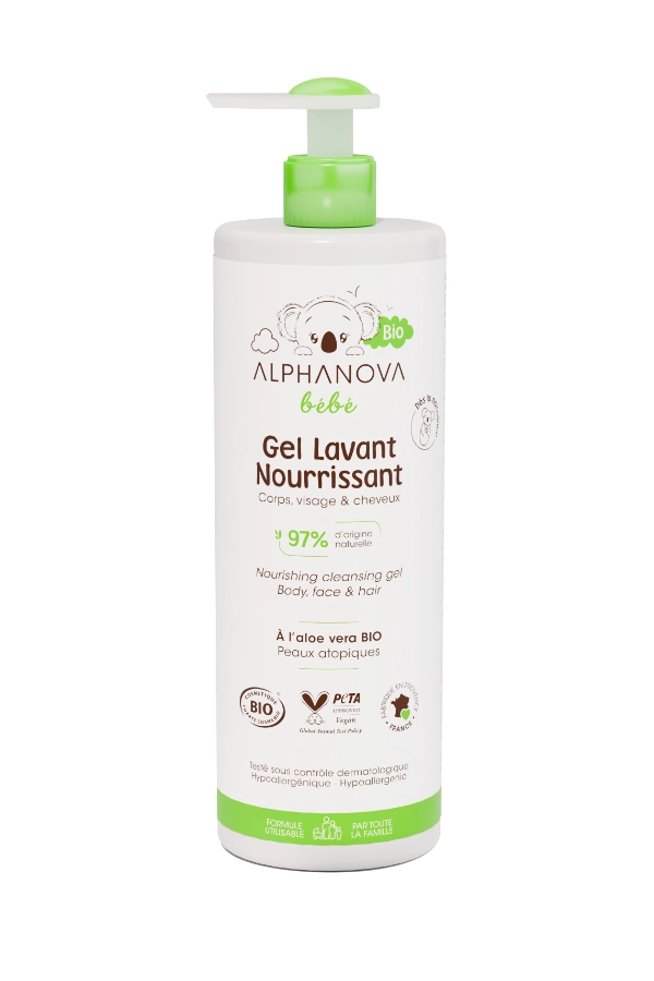 Alphanova Bebe je nježni gel za pranje s 97% prirodnih sastojaka. Namijenjen je za svakodnevno pranje tijela i kose beba, pogodan od rođenja i kod atopične kože. Formula ne iritira sluznicu, ne sadrži sulfate, parabene, parfeme ni fenoksietanol. Dermatološki i pedijatrijski testirano.