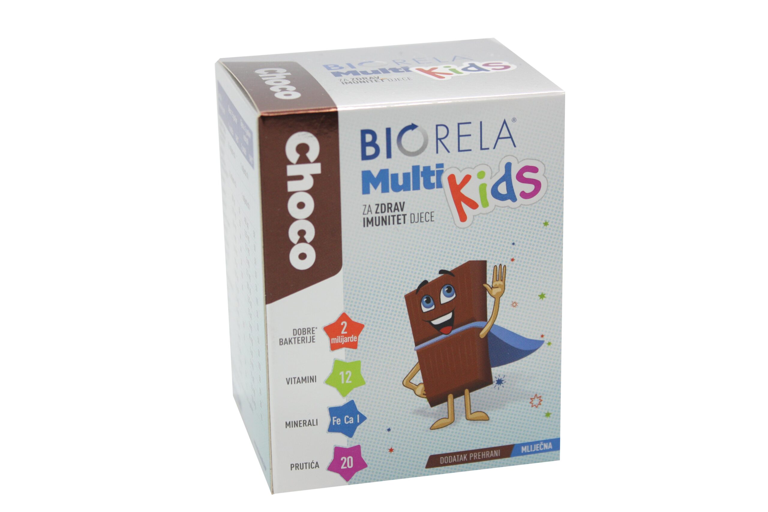 Biorela® Choco Multi Kids je dodatak prehrani u obliku ukusne mliječne čokolade, namijenjen djeci za podršku imunološkom sustavu te zdrav rast i razvoj. Sadrži kombinaciju vitamina, minerala i probiotičkih kultura, pružajući sveobuhvatnu potporu zdravlju djece. Čokoladni oblik olakšava konzumaciju i čini ga atraktivnim za djecu.