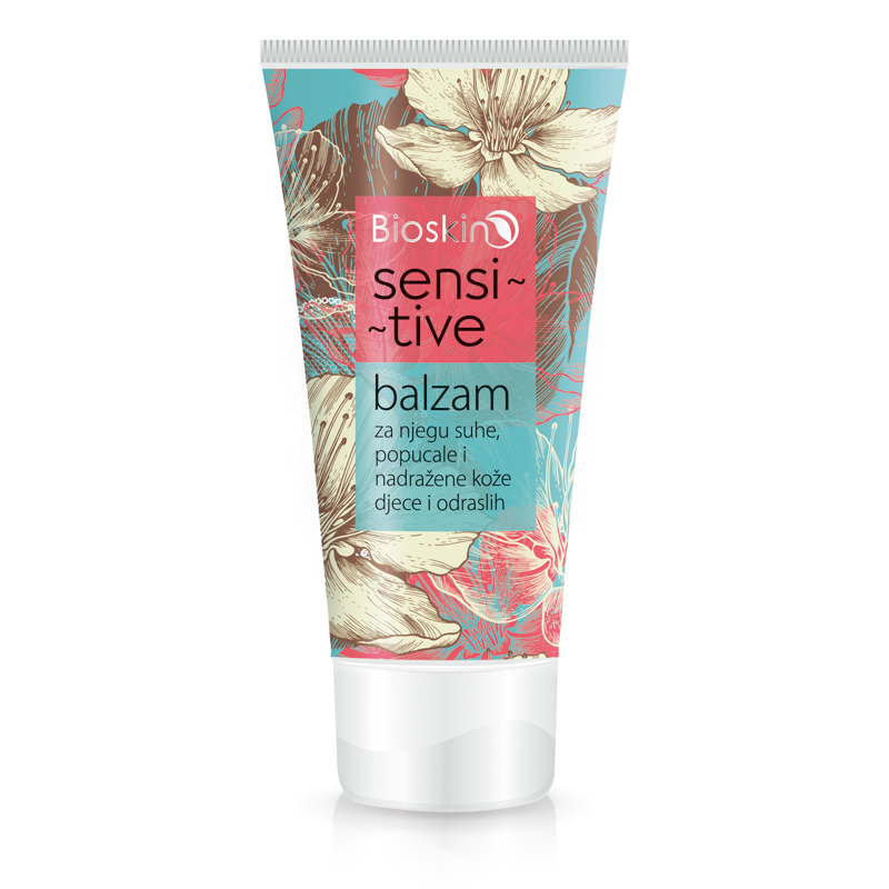 Bioskin Sensitive balzam je prirodni proizvod namijenjen njezi suhe, osjetljive i nadražene kože sklone upalama i alergijama. Sadrži kombinaciju hladno prešanih biljnih ulja, uključujući ulje trputaste lisičine, tamanu ulje, ulje sjemenki noćurka, shea maslac i pročišćeni klinoptilolit (zeolit). Ova kombinacija sastojaka djeluje umirujuće, regenerira oštećenu hidrolipidnu barijeru kože i pruža intenzivnu hidrataciju. Proizvod je pogodan za upotrebu kod odraslih i djece, uključujući novorođenčad. Pakiran je u praktično pakiranje od 150 ml, što ga čini ekonomičnim za dugotrajnu upotrebu.