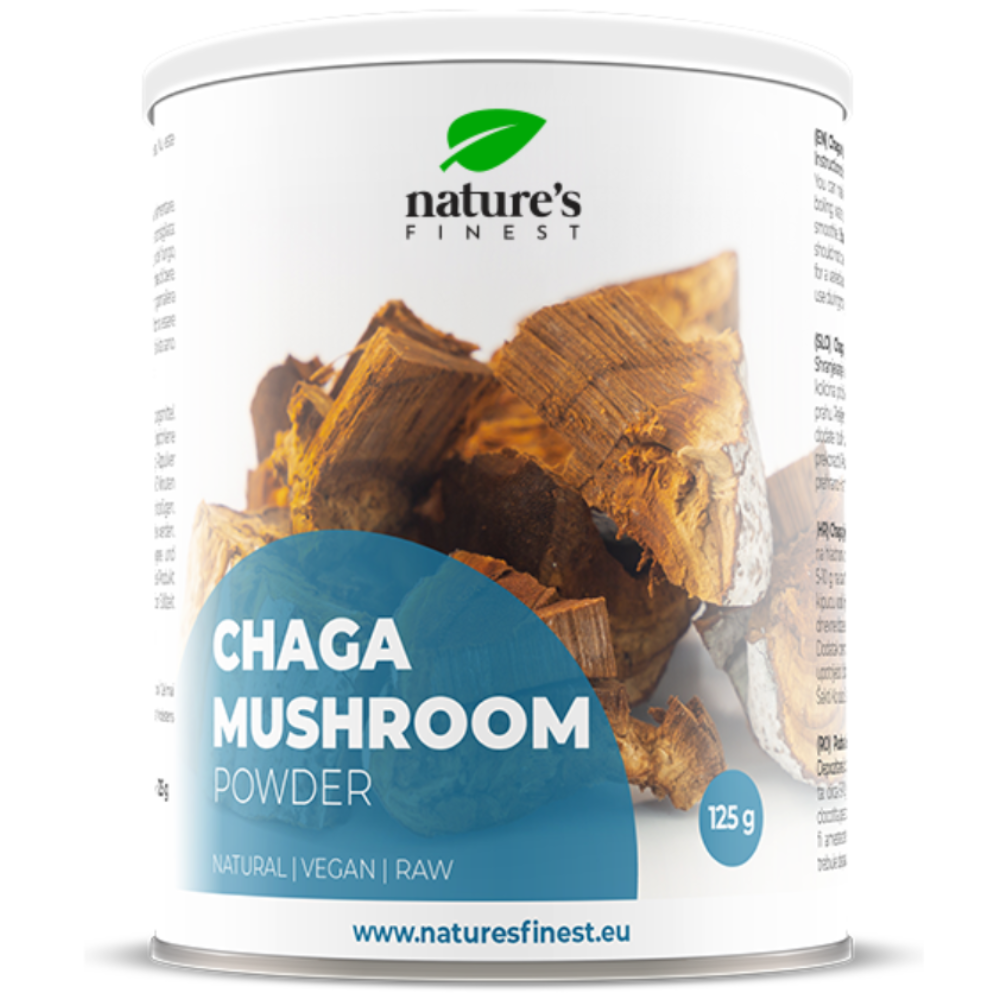 Chaga gljiva (Inonotus obliquus) je ljekovita gljiva koja raste u šumama sjevernog Sibira, sjeverne Kanade, sjevernog Japana i sjeveroistočnog SAD-a. U ruskom travarstvu izuzetno je cijenjena zbog svojih zdravstvenih svojstava. Chaga je poznata po visokoj ORAC vrijednosti, što znači da ima snažna antioksidativna svojstva. Sadrži betulinsku kiselinu, prirodni spoj poznat po antivirusnim, antitumorskim i protuupalnim svojstvima. Obogaćena je melaninom, koji jača kožu i kosu.