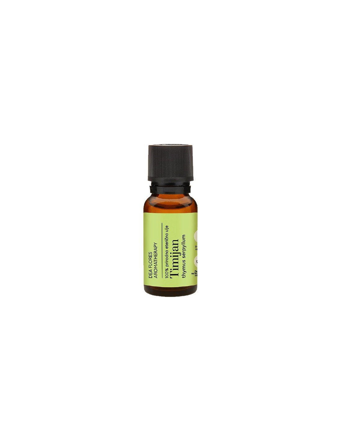 Eterično ulje timijana je prirodni proizvod dobiven destilacijom vodenom parom iz nadzemnog dijela biljke Thymus vulgaris. Sadrži visok udio karvakrola, što mu daje snažno antiseptičko i antibakterijsko djelovanje. Često se koristi u aromaterapiji za čišćenje prostora i poticanje koncentracije.