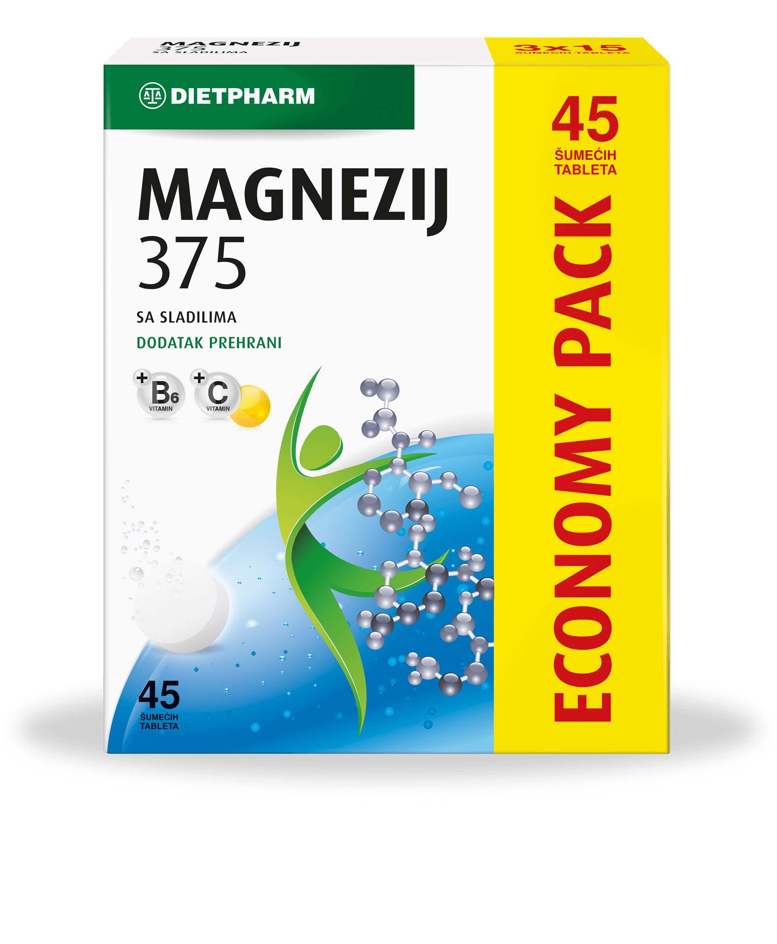 FIDI MAGNEZIJ 375 ŠUM.TBL. A 45 je dodatak prehrani koji sadrži 375 mg magnezija u obliku magnezijevog citrata, što predstavlja 100% preporučenog dnevnog unosa magnezija.