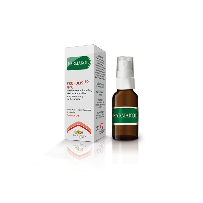 Farmakol Propolis 150 sprej je dodatak prehrani koji sadrži standardizirani suhi ekstrakt propolisa, poznat po svojim protuupalnim i baktericidnim svojstvima. Namijenjen je ublažavanju nadražaja sluznice grla i usne šupljine, posebno kod otežanog gutanja, promuklosti, upale ždrijela, stanja gripe i viroze. Proizvod je namijenjen djeci od 12 godina i odraslima.