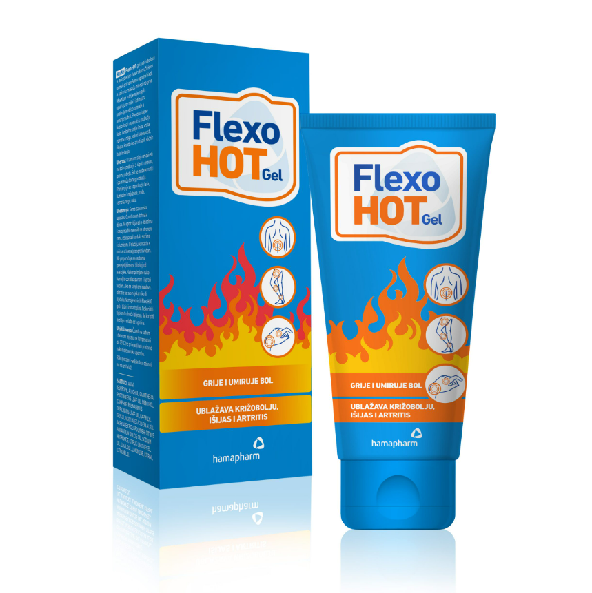 Flexo HOT gel je proizvod namijenjen ublažavanju bolova i napetosti u mišićima i zglobovima. Sadrži jedinstvenu kombinaciju sastojaka koji pružaju dvostruki učinak: odmah pri nanošenju ugodno hladi, a zatim uz masažu intenzivno grije. Ovaj gel je posebno koristan za osobe koje pate od bolova u leđima, lumbalnoj kralježnici, vratu, ramenima i nogama, kao i za one koji imaju problema s ukočenošću mišića i zglobova, išijasom, artritisom ili sličnim bolnim stanjima. Također je koristan za zagrijavanje mišića prije i opuštanje nakon sportskih i drugih aktivnosti.