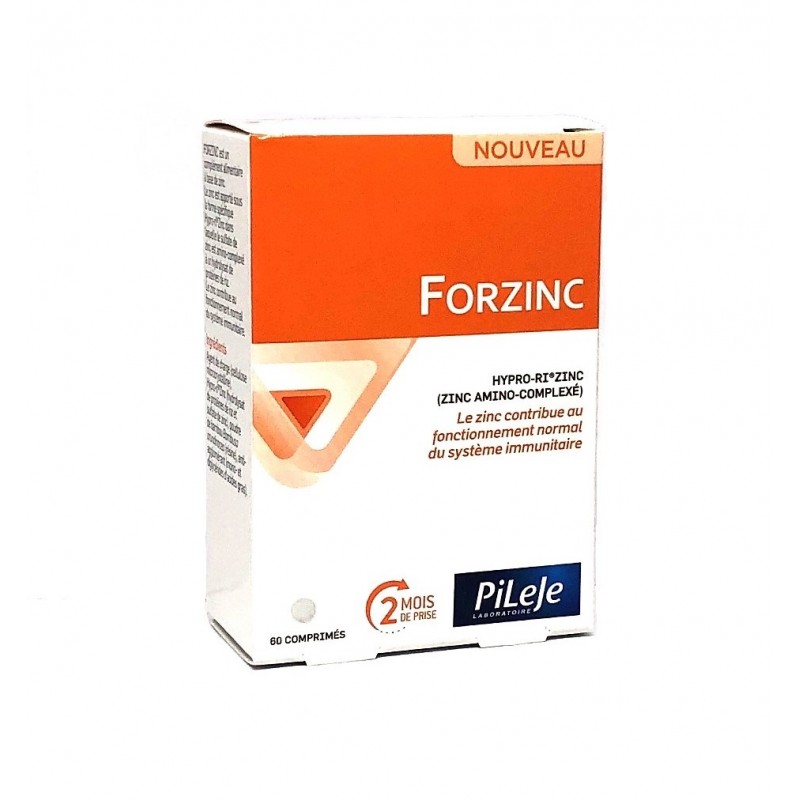 Forzinc je dodatak prehrani koji sadrži cink u patentiranoj molekuli Hypro-ri®Zinc. Cink doprinosi normalnoj funkciji imunološkog sustava. Preporučuje se uzimati 1 tabletu dnevno s velikom čašom vode. Pakiranje sadrži 60 tableta, što je dovoljno za 2 mjeseca korištenja. Proizvod je dostupan na web stranici proizvođača PiLeJe.