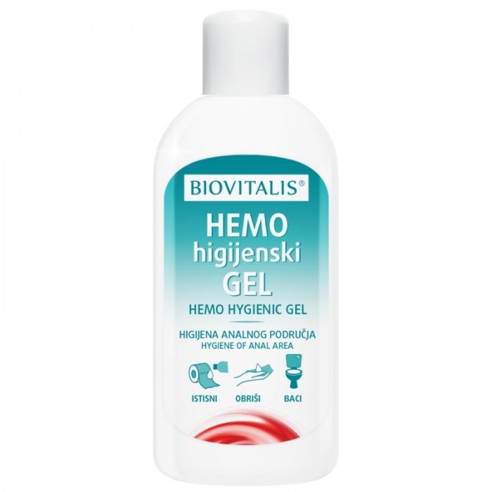 HEMO HIGIJENSKI GEL 100 ML/BIOVITALIS je inovativni proizvod namijenjen za temeljitu, ali nježnu higijenu analnog područja. Gel transformira suhi toaletni papir u vlažnu maramicu, pružajući učinkovito čišćenje i njegu. Posebno je koristan za osobe s hemoroidima ili one koji osjećaju nelagodu u analnom području, poput peckanja, svrbeža ili crvenila.