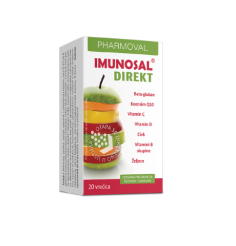 Imunosal Direkt je multivitaminski dodatak prehrani u obliku vrećica namijenjen za direktno otapanje u ustima bez potrebe za vodom. Sadrži kombinaciju beta-glukana, koenzima Q10, vitamina D, vitamina C, vitamina B skupine, cinka i željeza, koji doprinose normalnoj funkciji imunološkog sustava, smanjenju umora i iscrpljenosti te normalnom metabolizmu stvaranja energije. Proizvod je praktičan za svakodnevnu upotrebu, posebno za one koji ne vole kapsule ili su u pokretu i nemaju pri ruci čašu vode.
