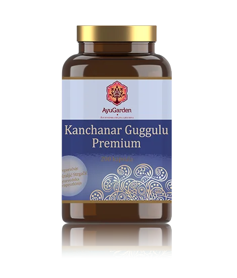 Kanchanar-Guggulu je tradicionalni ayurvedski biljni pripravak koji se koristi za podršku zdravlju štitnjače, smanjenje upala i poticanje detoksikacije organizma. Sastoji se od kombinacije biljaka koje djeluju sinergijski kako bi podržale ravnotežu hormona i opće zdravlje.