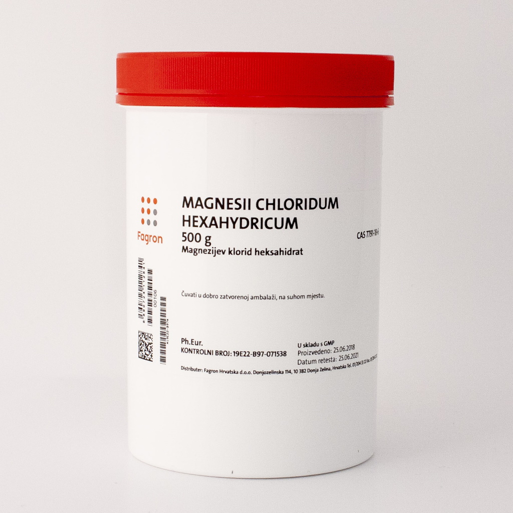 Magnesii chloridum hexahydricum je bezvodni magnezijev klorid u obliku bezbojnih kristala. Koristi se u kemiji i molekularnoj biologiji kao izvor magnezijevih iona. Njegova molekularna masa iznosi 203,3 g/mol, a kemijska formula je MgCl₂·6H₂O. Ova tvar je higroskopna i lako se otapa u vodi. U laboratorijskim uvjetima, magnezijev klorid hexahidrat se često koristi u pripremi otopina za kulturu stanica i biokemijske analize. Dostupan je u različitim pakiranjima, uključujući 250 g, 500 g, 1 kg, 2,5 kg i 5 kg. Preporučuje se čuvati na sobnoj temperaturi, a rok trajanja neotvorenog pakiranja je 36 mjeseci.