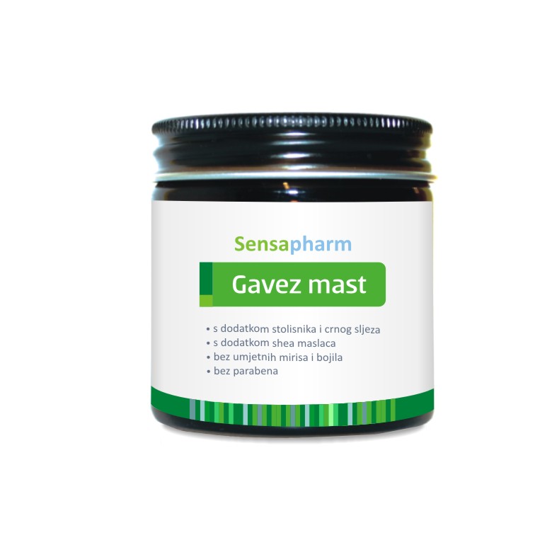 MAST OD GAVEZA 50 ML/SENSA PH. je proizvod namijenjen za njegu kože, posebno za tretiranje manjih ozljeda, modrica i upala. Sadrži ekstrakt gaveza poznat po svojim regenerativnim svojstvima koja potiču brže zacjeljivanje kože. Mast je pogodna za sve tipove kože i može se koristiti na licu i tijelu.