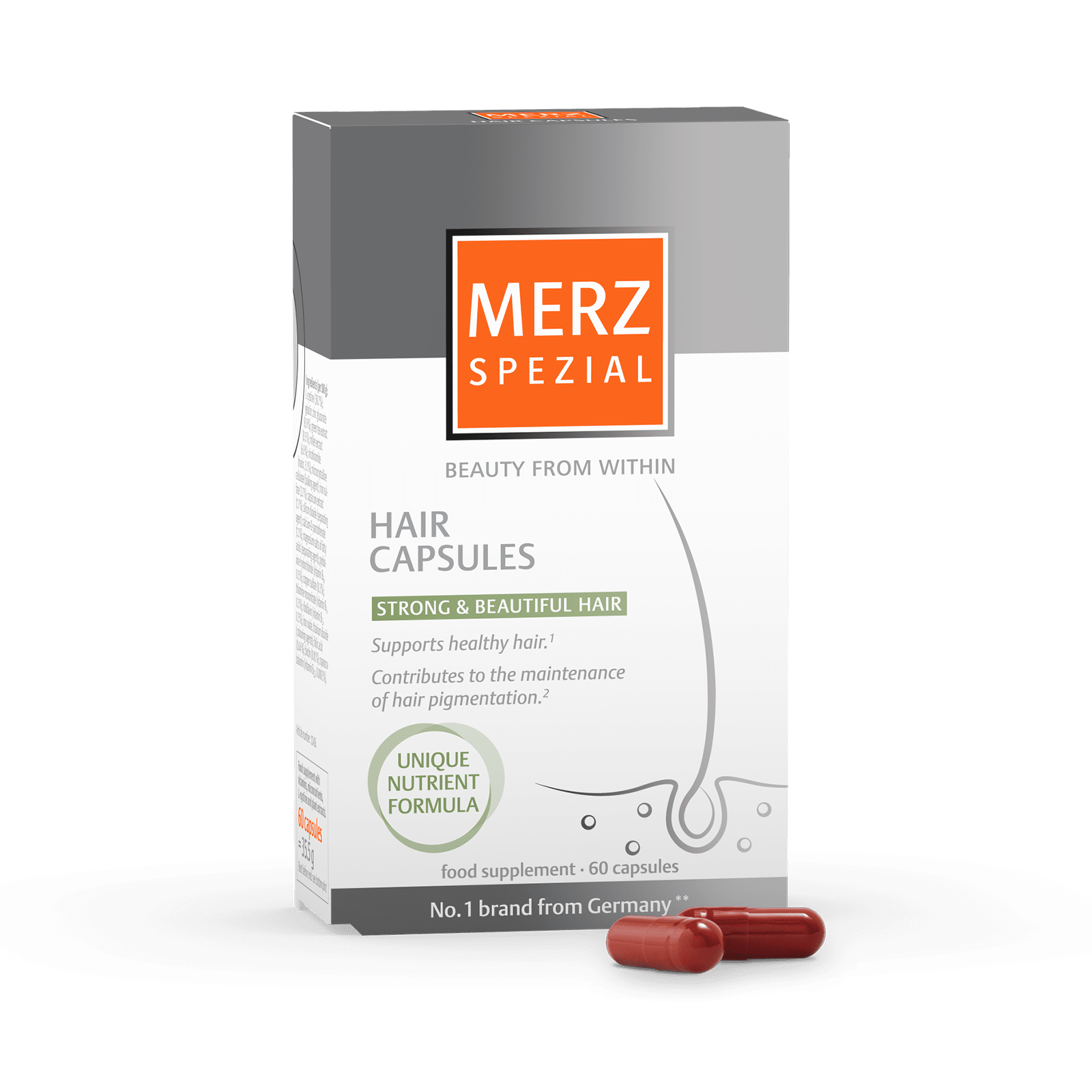 MERZ Spezial Hair Capsules su dodatak prehrani osmišljen za potporu zdravlju kose. Sadrže jedinstvenu kombinaciju vitamina, minerala, L-cisteina, ekstrakta paprike i ekstrakta prosa, koji zajedno pridonose zdravlju i ljepoti kose. Proizvod je namijenjen osobama koje žele ojačati kosu i održati njezinu prirodnu boju.