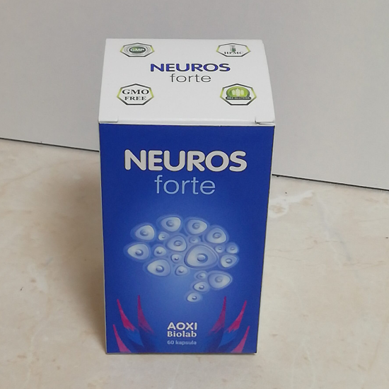 NEUROS FORTE je dodatak prehrani koji sadrži kombinaciju vitamina i bioaktivnih tvari, uključujući vitamin C, vitamine B1, B6, B12, D3 i K2. Ovi sastojci doprinose zaštiti stanica od oksidativnog stresa, normalnoj funkciji imunološkog sustava, normalnom metabolizmu stvaranja energije, normalnoj funkciji živčanog sustava, očuvanju normalnih kostiju, normalnom zgrušavanju krvi te smanjenju umora i iscrpljenosti. Proizvod je namijenjen osobama koje žele podržati svoju kognitivnu i psihološku funkciju, kao i razinu energije. Prikladan je za učenike, studente, zaposlene s povećanim mentalnim naporom i osobe izložene stresu.