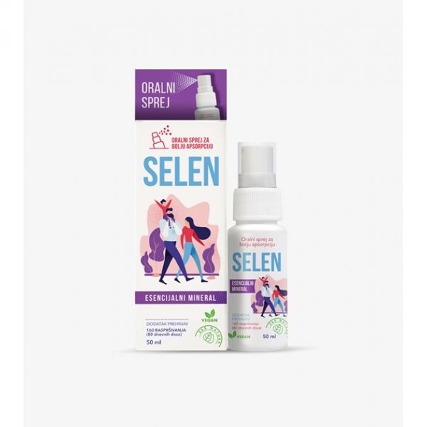 SELEN U SPREJU 50ML 365 NATURE/BV je oralni dodatak prehrani u obliku spreja koji sadrži selen, esencijalni mikroelement važan za normalno funkcioniranje štitnjače i imunološkog sustava. Selen doprinosi zaštiti stanica od oksidativnog stresa, održavanju normalne kose i noktiju te normalnoj spermatogenezi. Sprej omogućava brzu apsorpciju u krvotok, a praktično pakiranje omogućava jednostavno korištenje u bilo kojem trenutku.