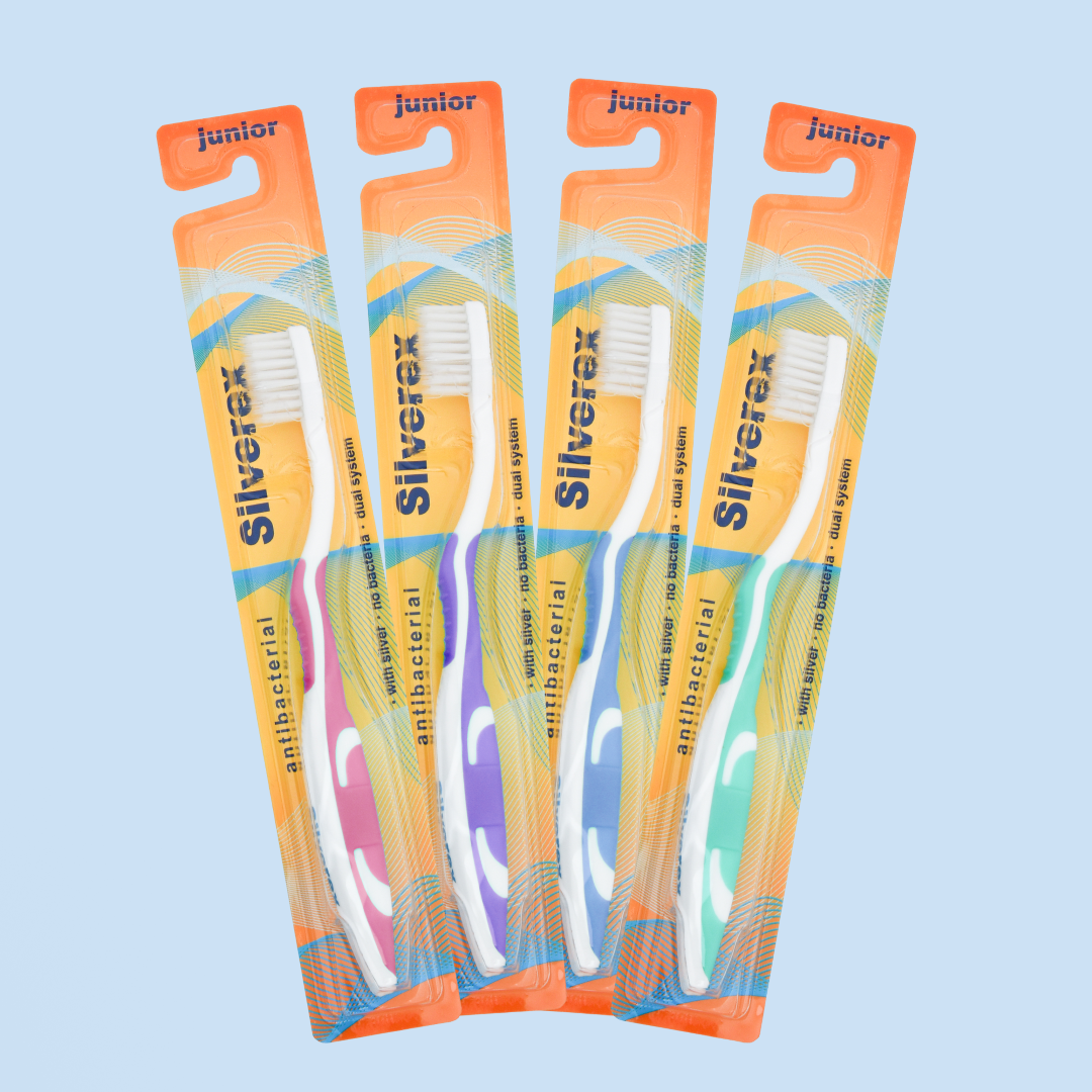 Silverex Junior četkica za zube namijenjena je djeci osnovnoškolskog uzrasta. S posebno oblikovanom malom glavom i mekim vlaknima, prilagođena je za nježno čišćenje zuba bez oštećenja zubnog mesa. Čestice srebra implementirane u vlakna eliminiraju bakterije, održavajući četkicu kontinuirano čistom prilikom svake uporabe. Inovativni dvostruki sistem vlakana tankoće 0,01 mm imitira zubni konac, smanjujući mogućnost nastanka karijesa kod djece. Dostupna je u plavoj, zelenoj, rozoj i ljubičastoj boji.