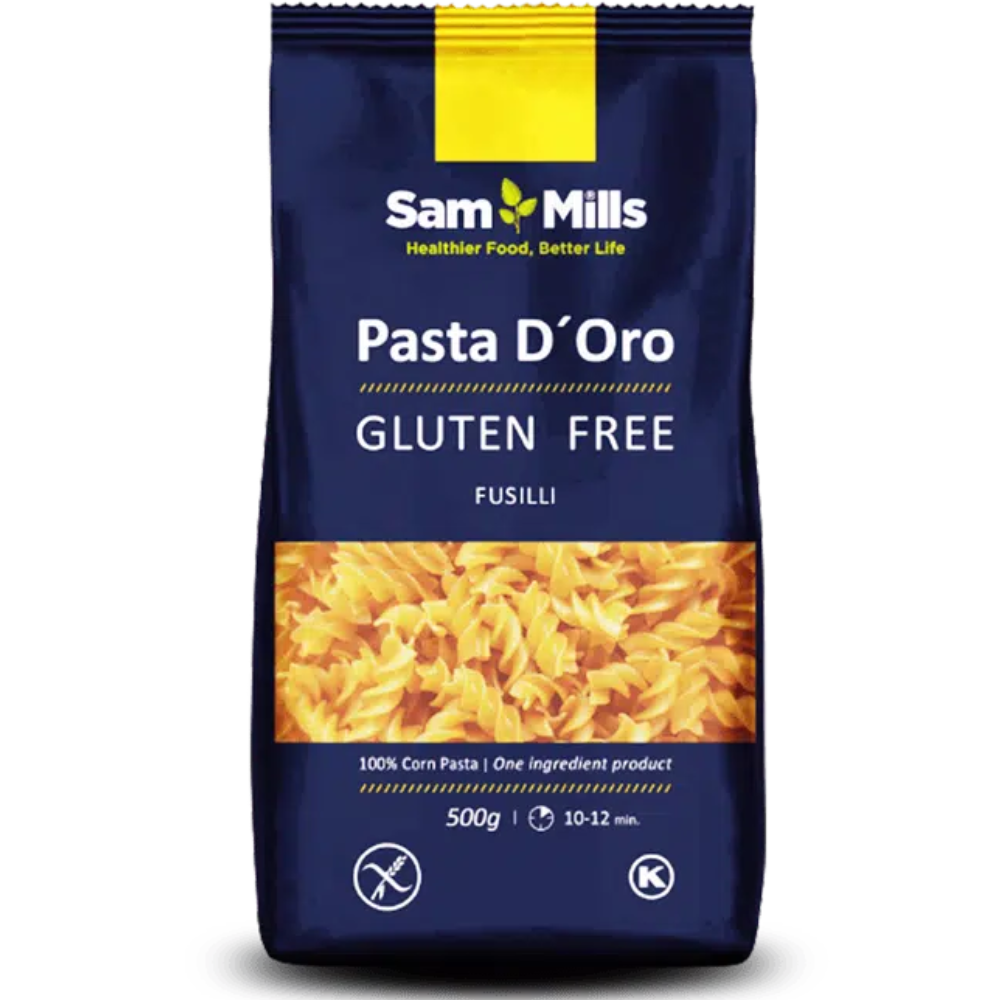 Fusili od kukuruznog brašna težine 500 grama proizvedeni od strane Sam Mills/TZH. Ova tjestenina je bezglutenska i pogodna za osobe s celijakijom ili osjetljivošću na gluten. Namijenjena je kao alternativa tradicionalnoj tjestenini, pružajući sličnu teksturu i okus, ali bez prisutnosti glutena.